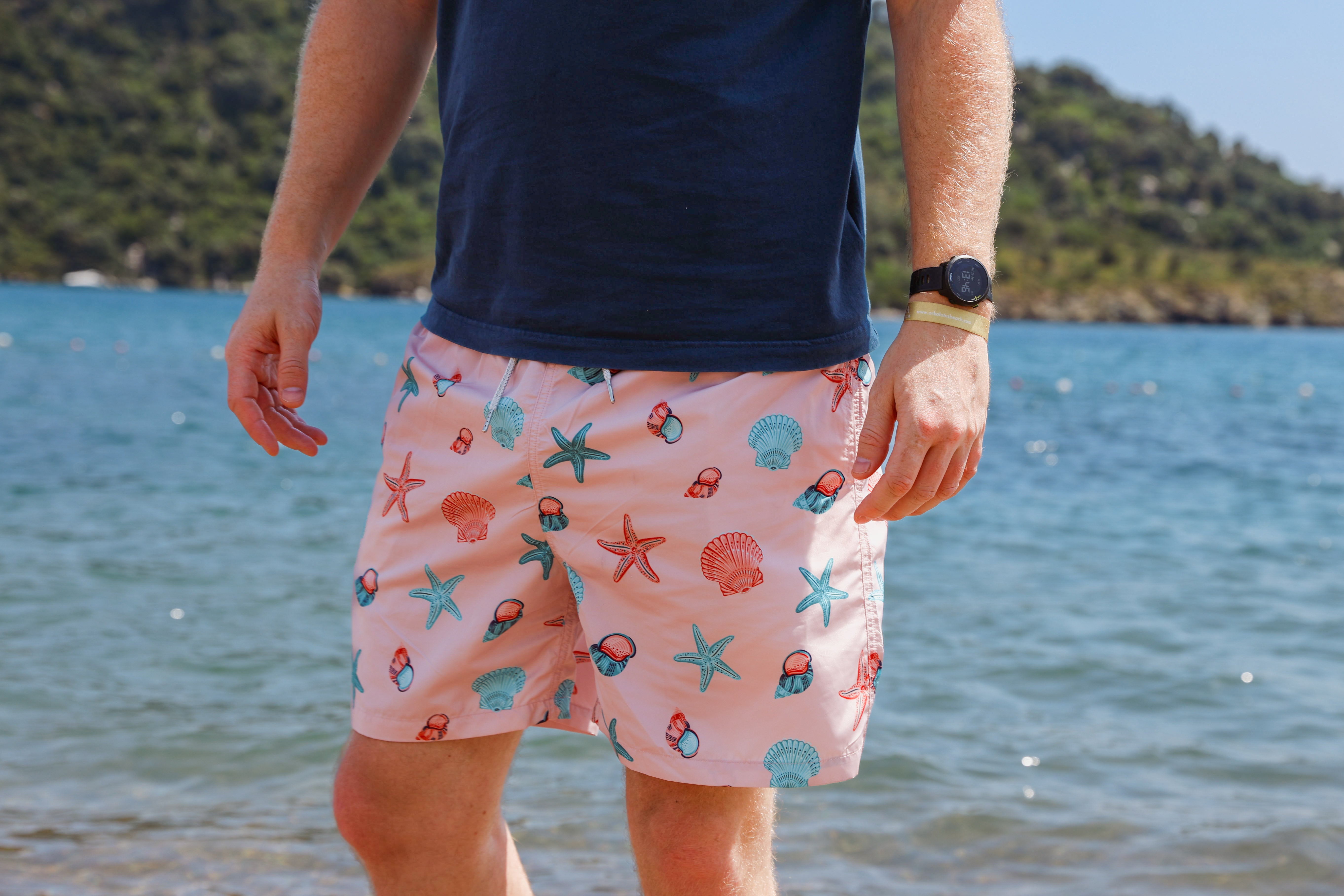 Part of our new 2025 collection. Featuring a vibrant pink base splashed with a dark pink and blue mixed shell and starfish design, they're guaranteed to turn heads and spark conversations wherever you go. Featuring our quick-drying, eco-friendly fabric. Complete...